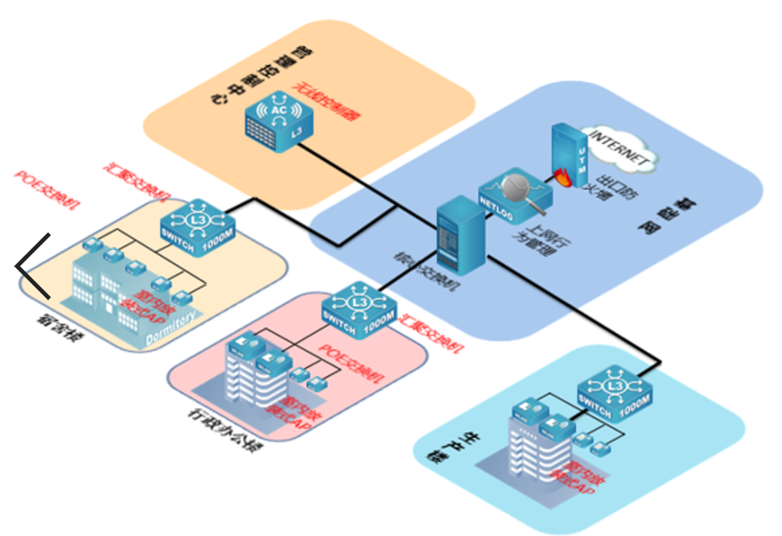 此次WLAN无线网建设要充分利用现有资源,与有线网络实现统一资源共享;覆盖办公室、仓库、主要走廊和宿舍等场所;实现笔记本、智能手机、平板电脑等多种WIFI无线终端泛在接入。